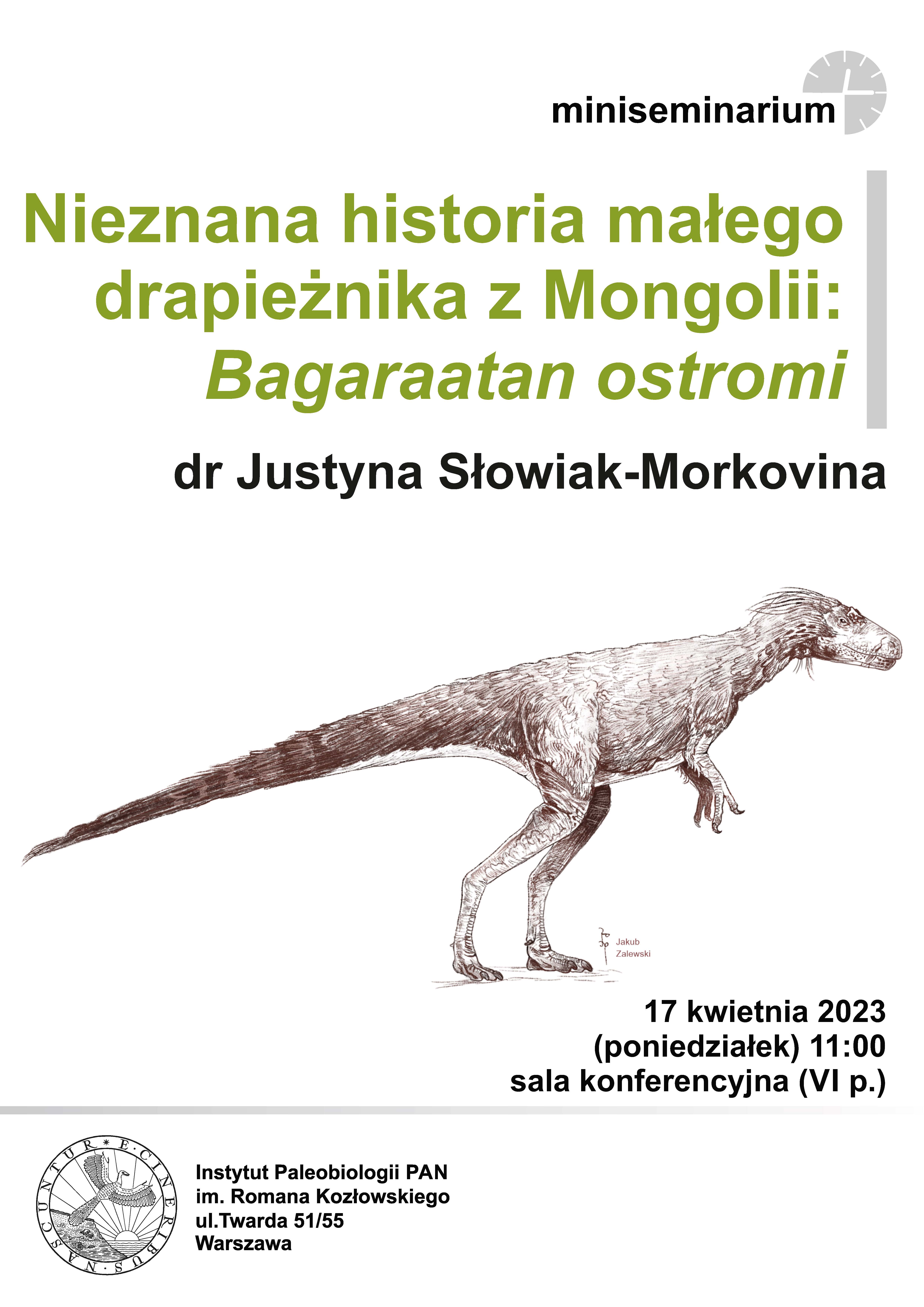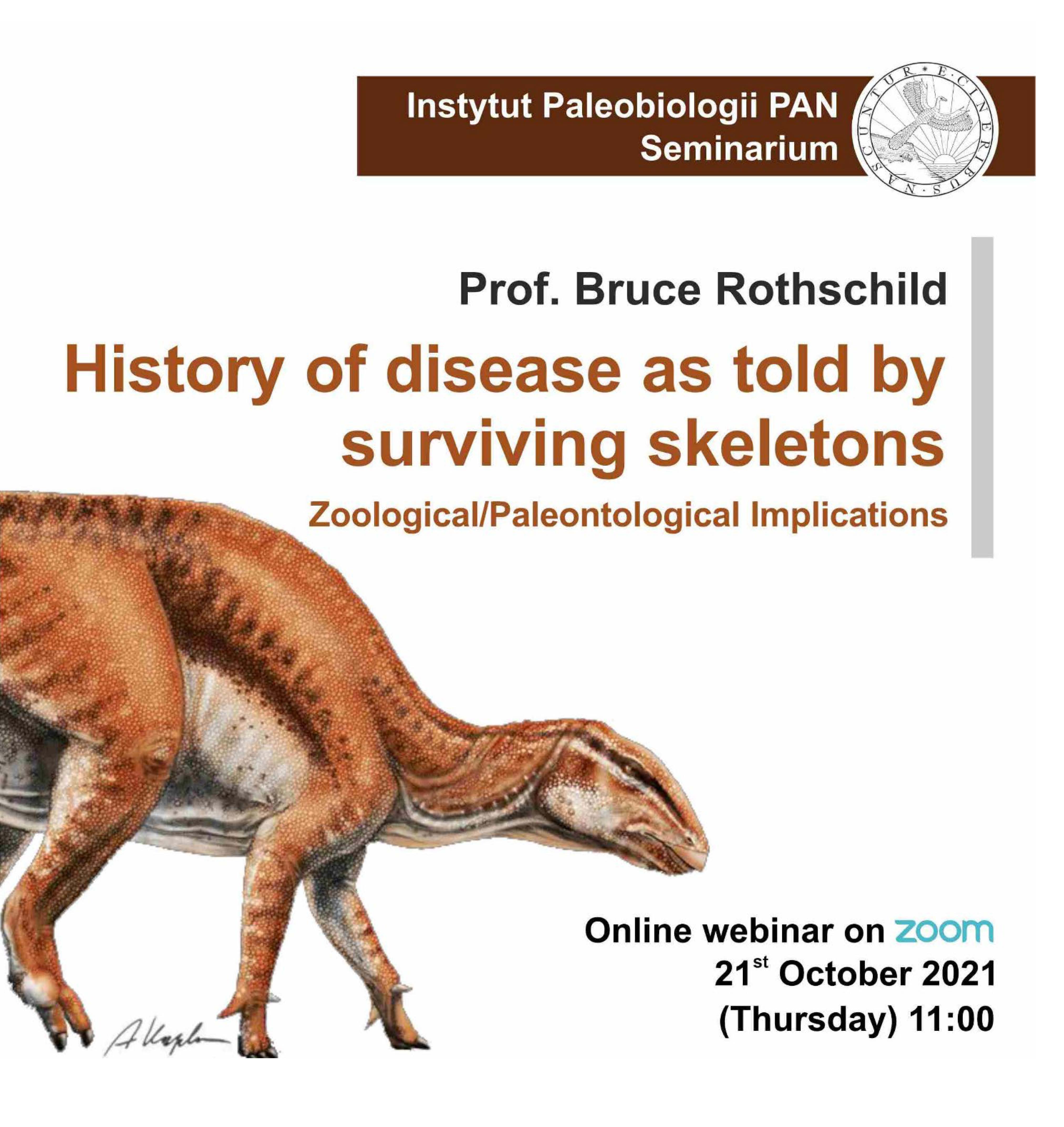 Wykład odbędzie się 9 listopada 2021 r. w Instytucie Paleobiologii PAN o godzinie 17:30 (Warszawa, Twarda 51/55, sala konferencyjna VI p.). Transmisja z wykładu online na kanale YouTube Muzeum Ewolucji.