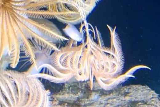Deep-sea research conducted using a submersible has, for the first time, provided direct evidence of antagonistic interactions between fish (Ophidiiformes) and stalked crinoids.