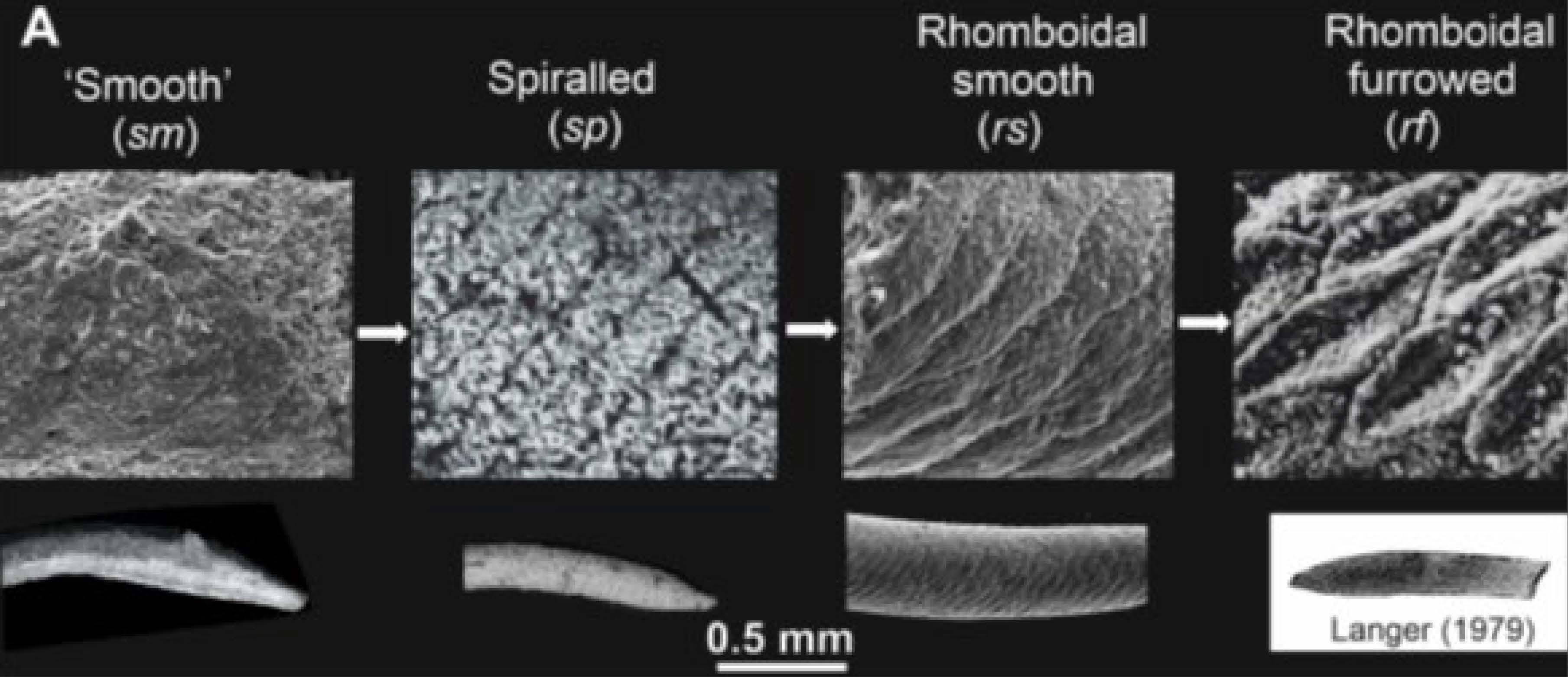 Figure: Various microstructures of Spirotubus carbonate skeletons under a scanning microscope.