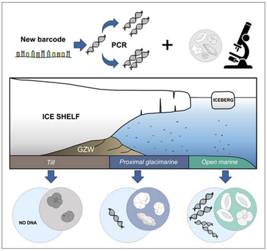 Figure: DNA preserved in marine sediments from tens of thousands of years ago makes it possible to reconstruct rich assemblages of foraminifera – microorganisms living at the foot of the Antarctic ice sheet.