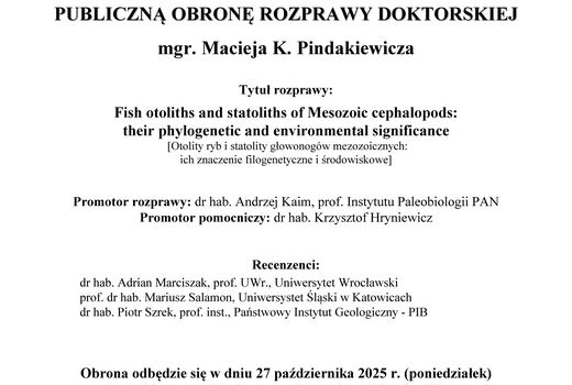 Instytut Paleobiologii otrzymał wsparcie finansowe na projekty badawcze i edukacyjne od: