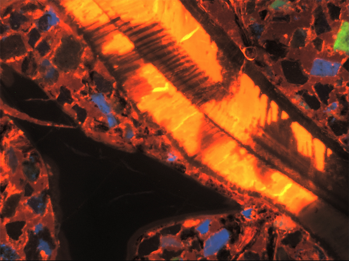 Cathodoluminescence microscopy enables analysis of light emitted by a luminescent material when excited by an electron source. Cathodoluminescence can reveal impurities of trace elements and hidden or cryptic textures in minerals that normally are not detected under optical microscopy.