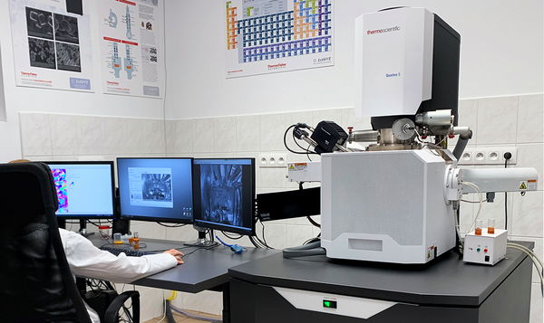SEM Quattro S is equipped with detectors: Secondary Electrons (SE), Backscatter Electrons (BSE), Cathodoluminescence (CL), Energy-dispersive X-ray spectroscopy (EDS), Electron backscatter diffraction (EBSD).
