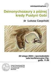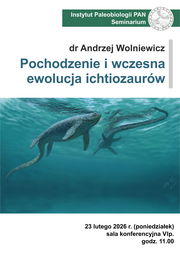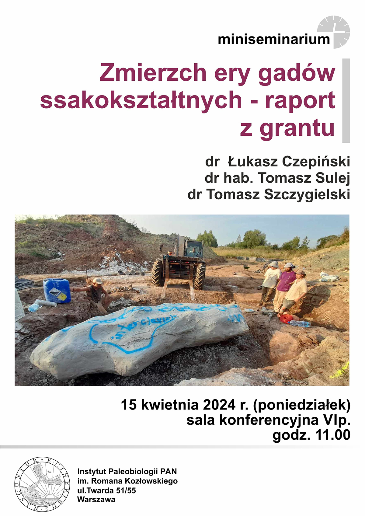15th April 2024 r (Monday), 11:00 a.m., dr Łukasz Czepiński, dr hab. Tomasz Sulej i dr Tomasz Szczygielski will give a seminar:"Zmierzch ery gadów ssakokształtnych - raport z grantu".