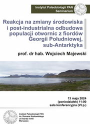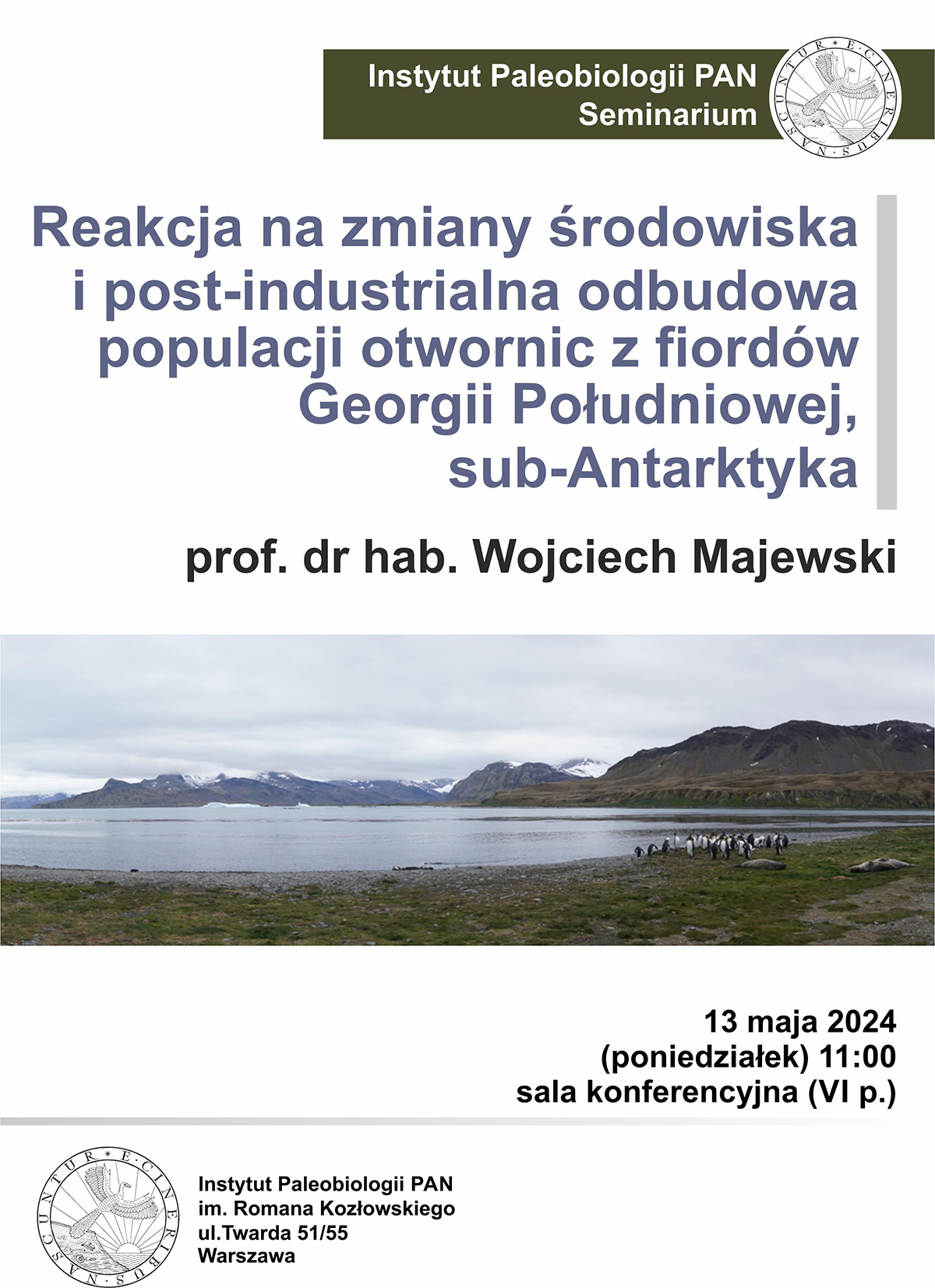 13th May 2024 (Monday), 11:00 a.m., prof. Wojciech Majewski will give a seminar: "Reakcja za zmiany środowiska i post-industrialna odbudowa populacji otwornic z fiordów Georgii Południowej, sub-Antarktyka".