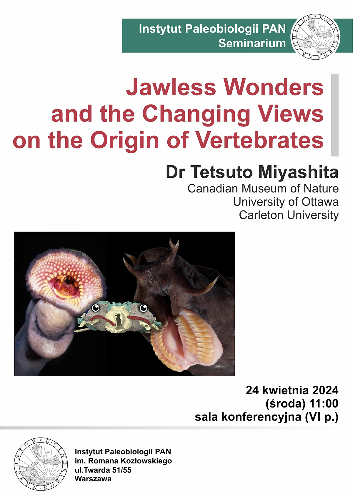 24th April 2024 r (Wednesday), 11:00 a.m., Dr Tetsuto Miyashita will give a seminar: "Jawless Wonders and the Changing Views on the Origin of Vertebrates".