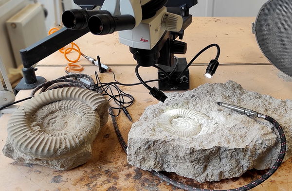 The lab is dedicated for preparation of fossils. Lab is equipped with a variety of mechanical tools as well as dust collection and extraction systems. In the lab preparation of samples can be commissioned or performed under supervision of specialist. The laboratory is mainly used for the preparation of vertebrate fossils, but the equipment allows working on other types of samples as well. Samples prepared here are used for both scientific and museum exhibition purposes.